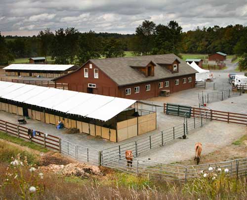 Arrival & things to be aware of: Our neighborhood is in a quiet country setting. We are surrounded by family homes and farms. To reach our farm, you will drive past residential homes and other farms. Catskill View Road is a partially dirt road, and is off the beaten track. Upon seeing the farm from the road, you will see brown four board oak fencing, horse fields with horses, and sheds. Our driveway is a dirt driveway, and all of our farm's interior roads and trails consist of stone dust. All of our trails are open and are large enough for large vehicles to gain access to all locations within the farm. Our trails will remain dry, regardless of rain (that is to say, our trails do not flood). Upon driving a few hundred feet into the farm, our large barn will become visible on your left and it's surrounding corral area which is overlooked by Thor Icelandics' residential home. The barn area may also contain vehicles, and horse trailers may be present in and around this area as well.